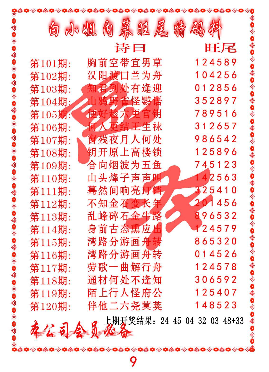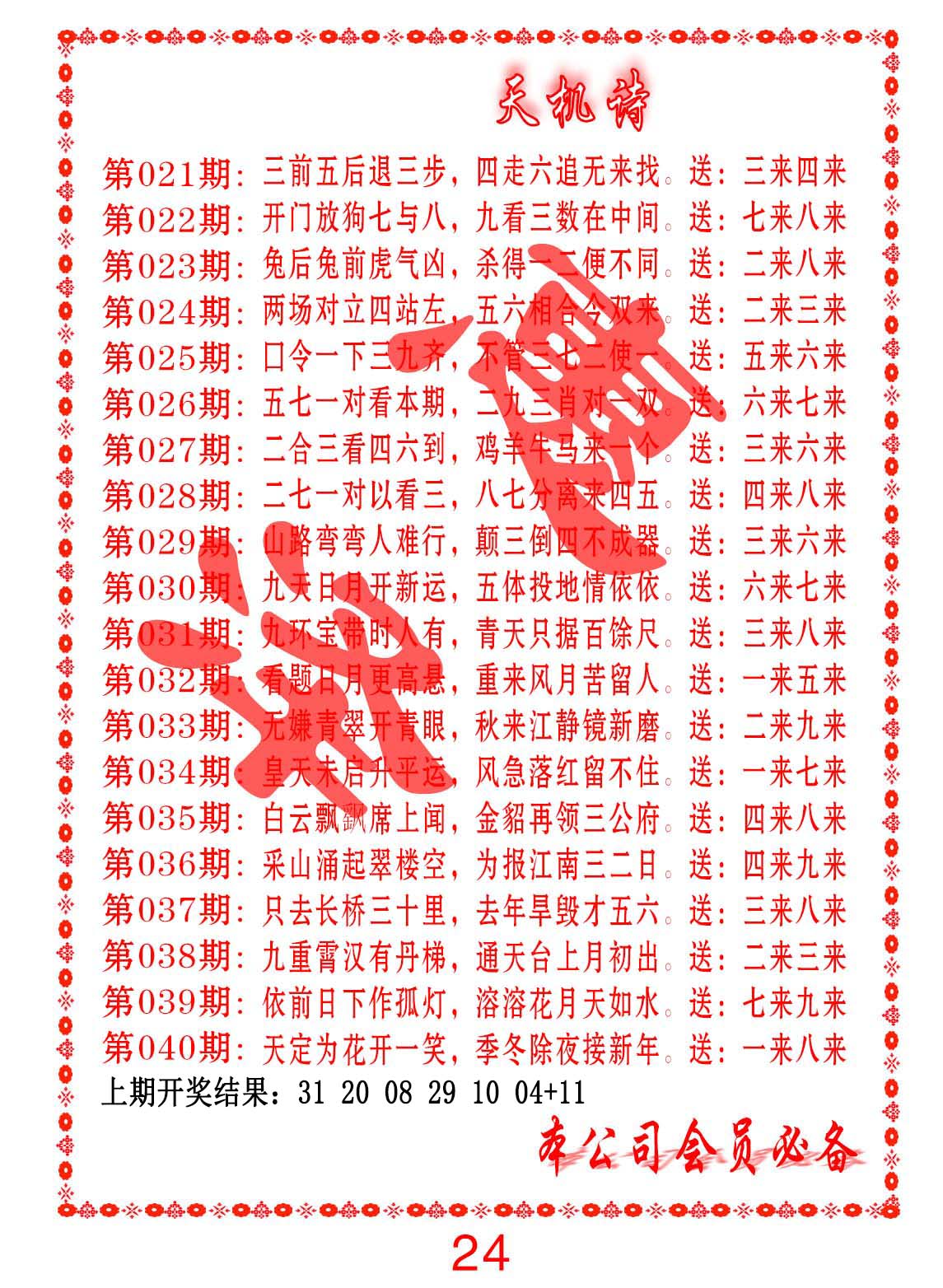 钻石玄机诗-输光料