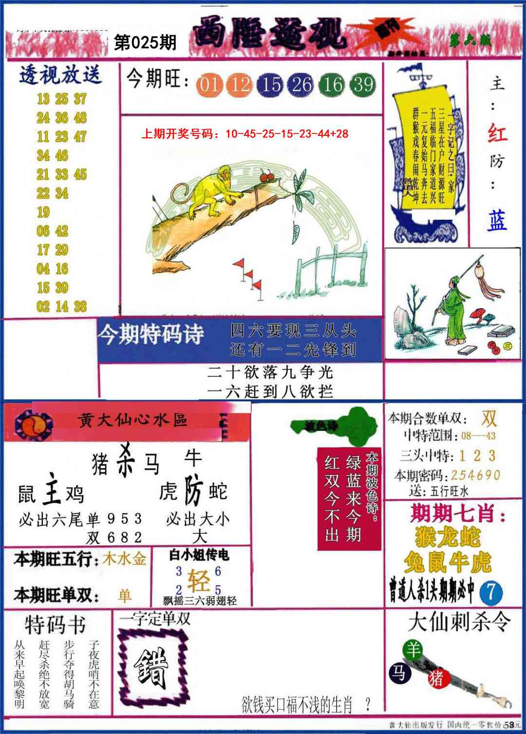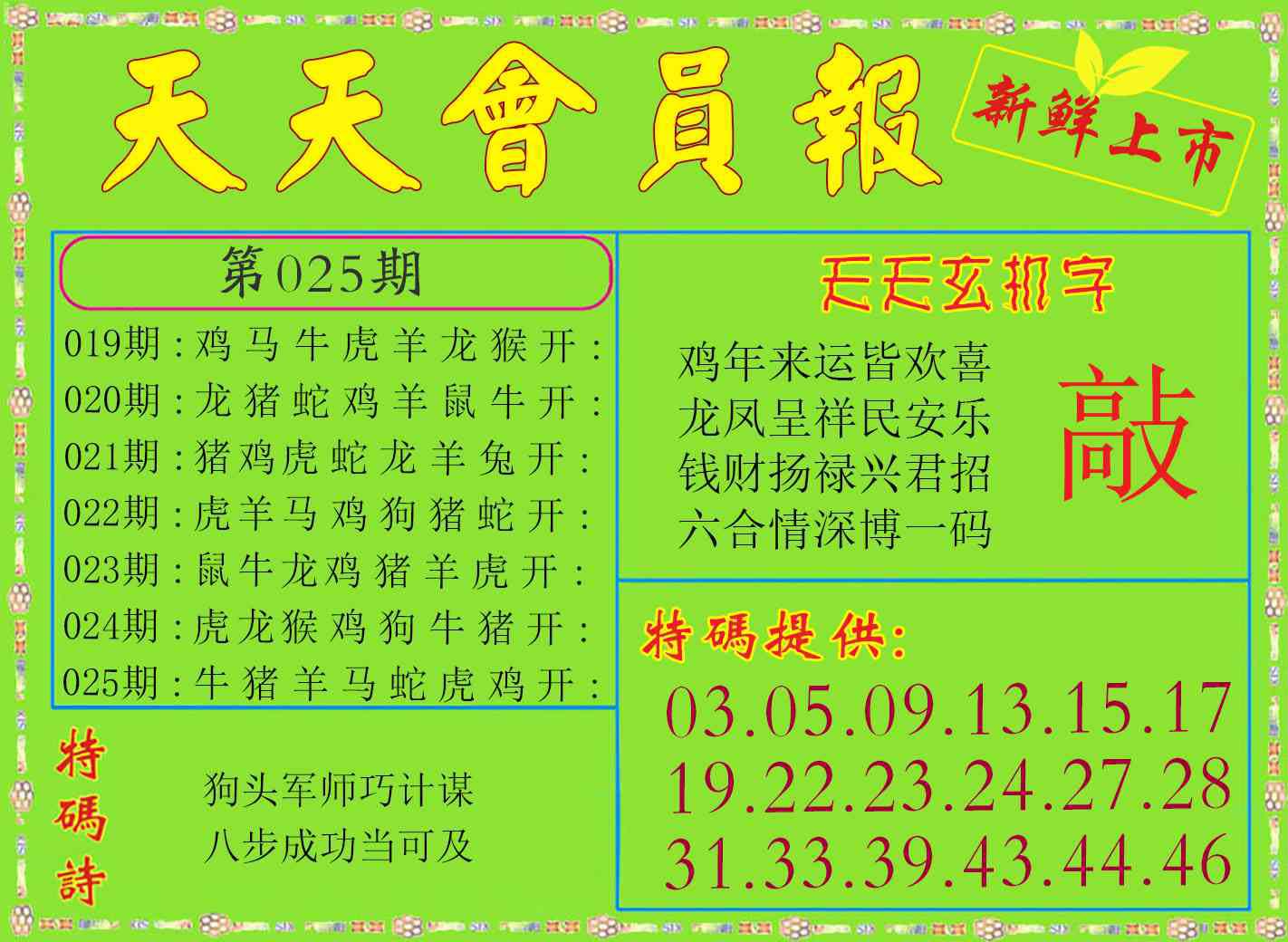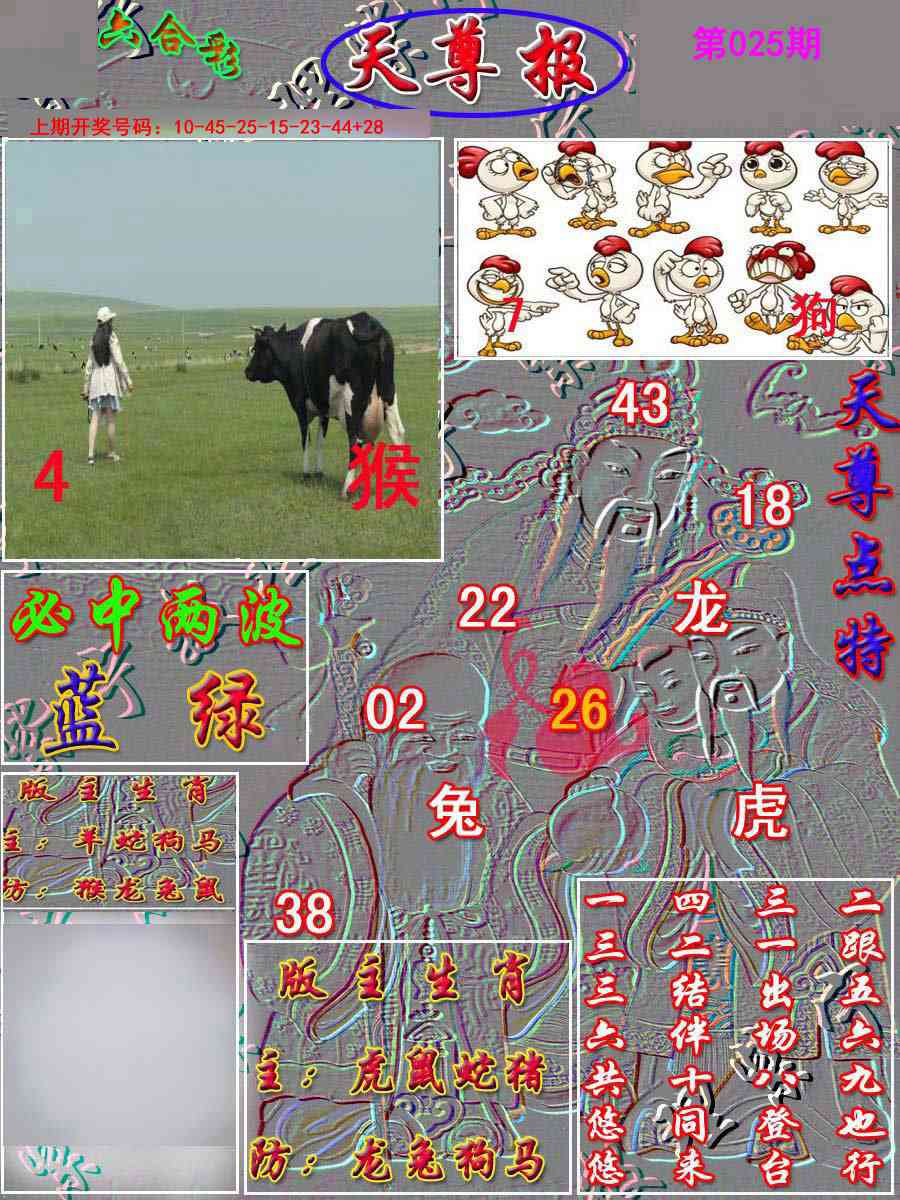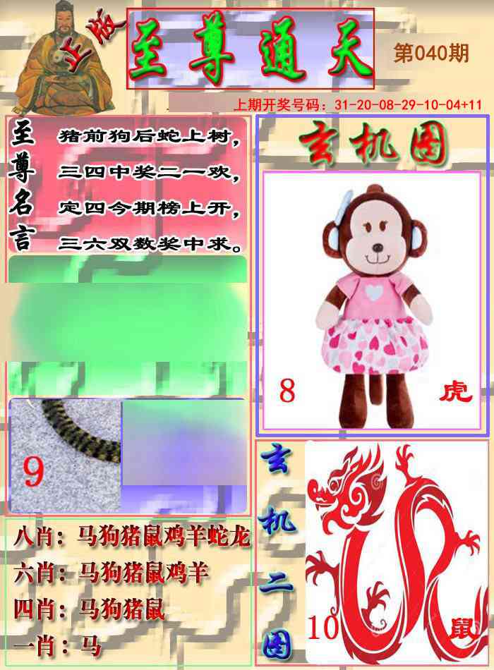 天肖:兔马猴猪牛龙 地肖:蛇羊鸡狗鼠虎
