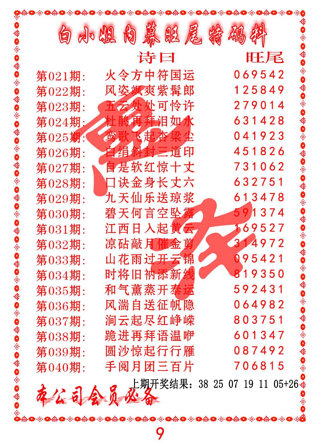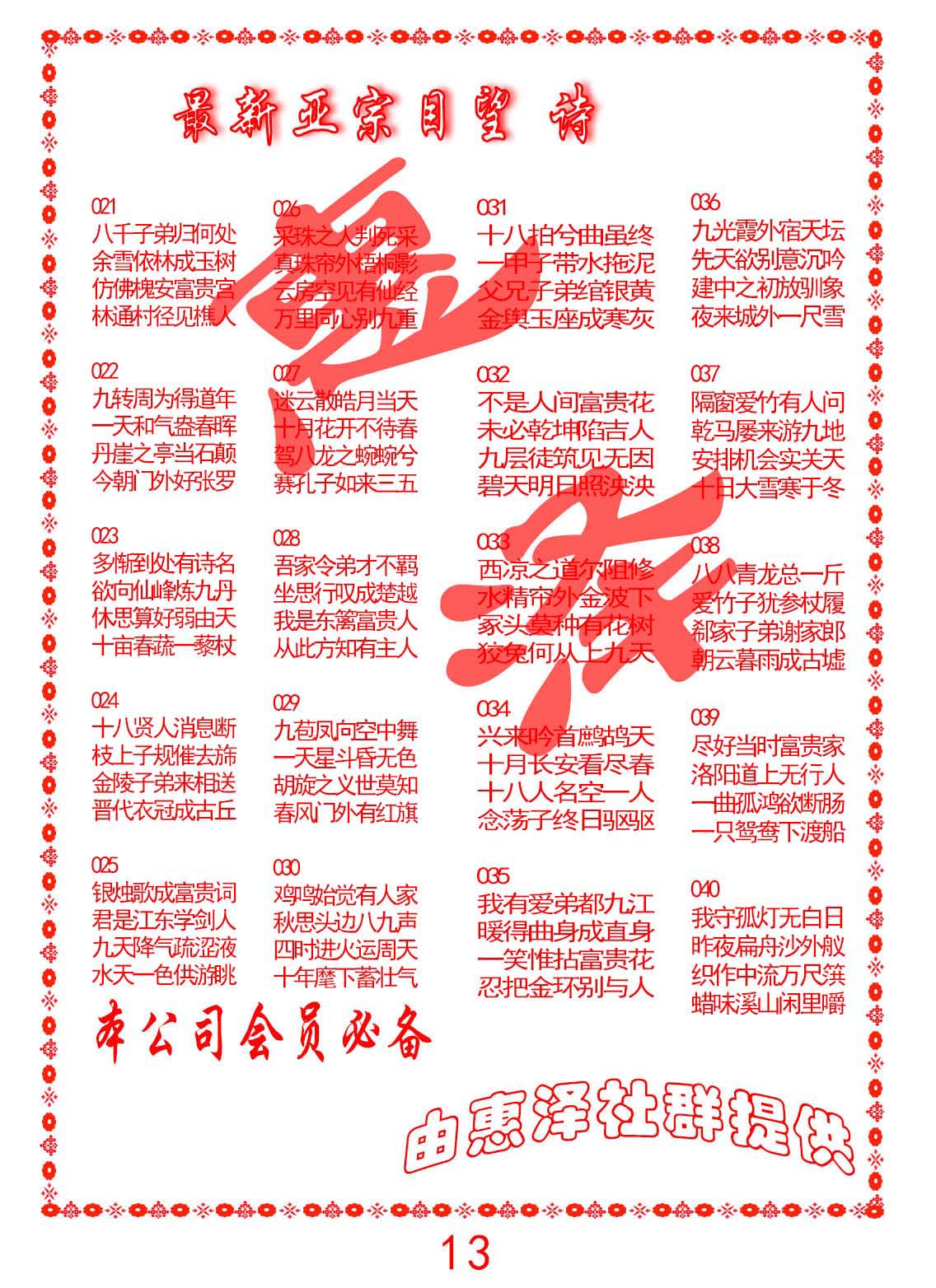 钻石玄机诗-输光料