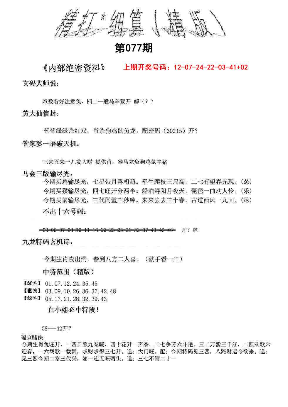 白小姐点解天机B