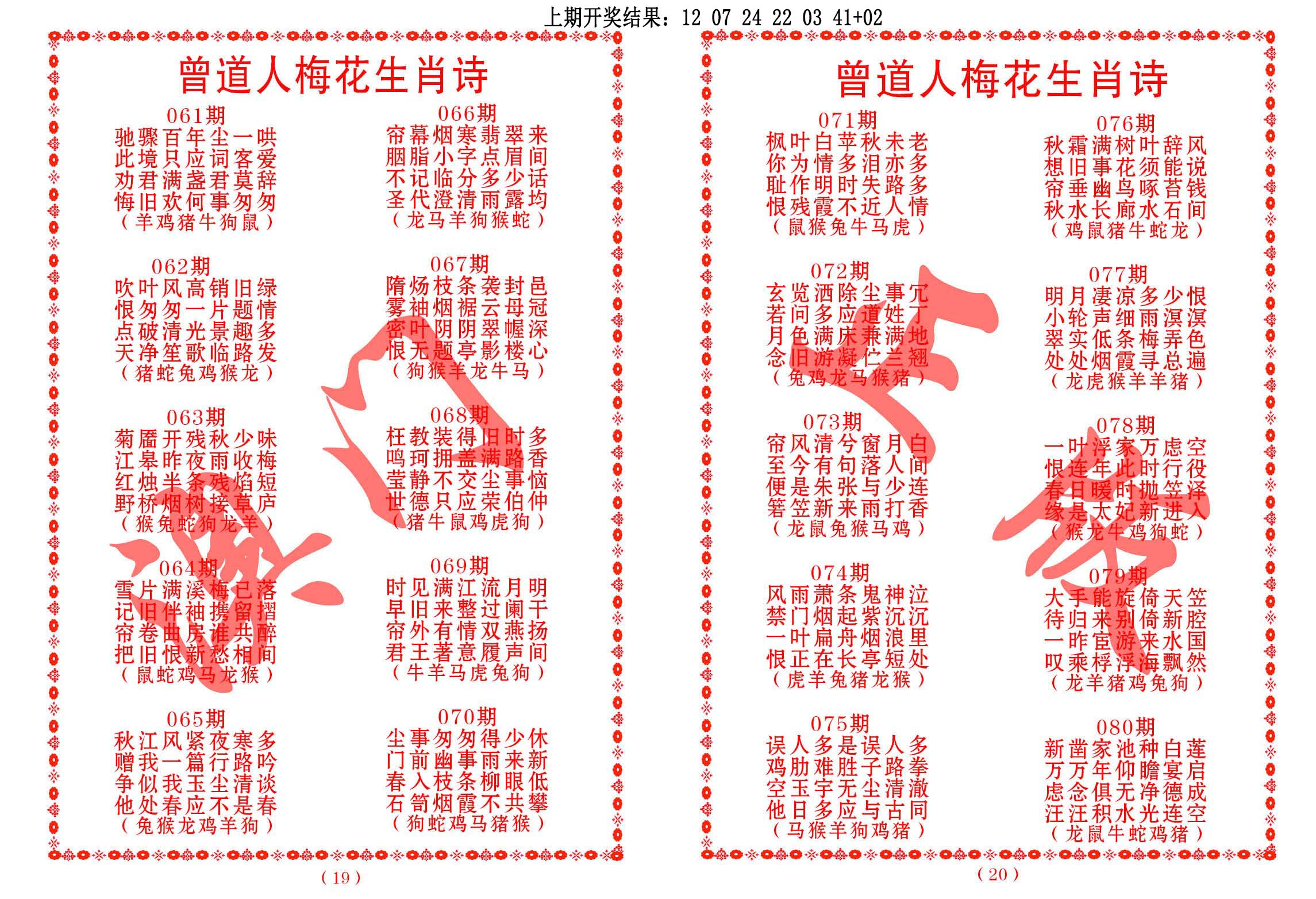 左肖:鼠牛龙蛇猴鸡 右肖:虎兔马羊狗猪