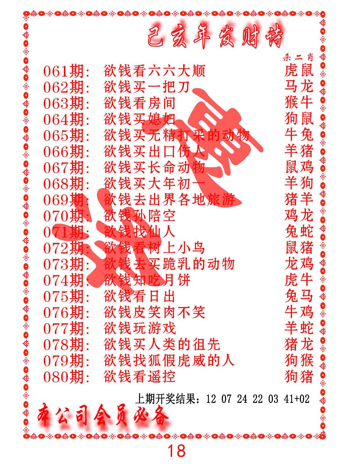 澳门财神到玄机